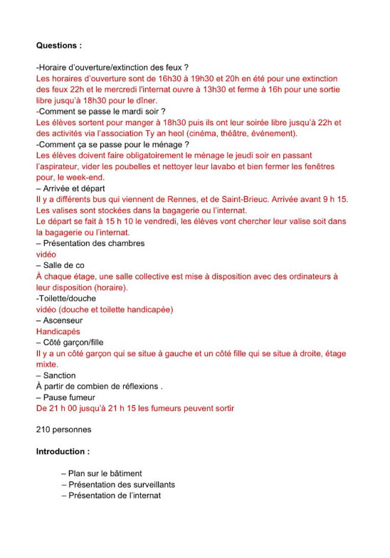 Quand on a eu l’idée de refaire la vidéo de l’internat, nous avons écrit sur doc des questions qui pourrait être posée au surveillant.