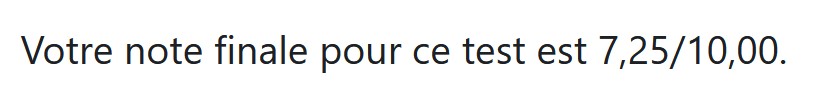 Voici la note obtenue avec les projets déposer plus un quiz.