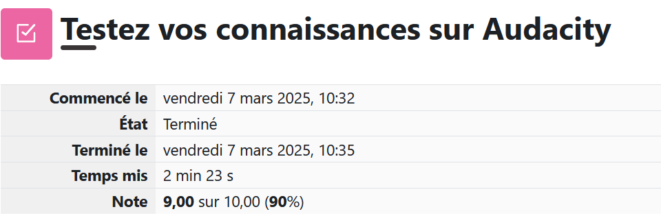 Je n’ai pas reçu le badge Audacity, car nous n’avons pas eu la moyenne et aussi du fait qu’on a eu beaucoup de difficulté à faire ce podcast.