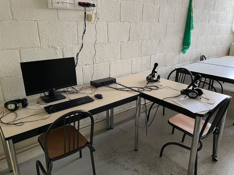 À la fin de l’enregistrement, nous avons remarqué que le micro de Mr Croizer ne fonctionnait pas, alors pour le deuxième enregistrement, nous avons partagé notre micro aux élèves.