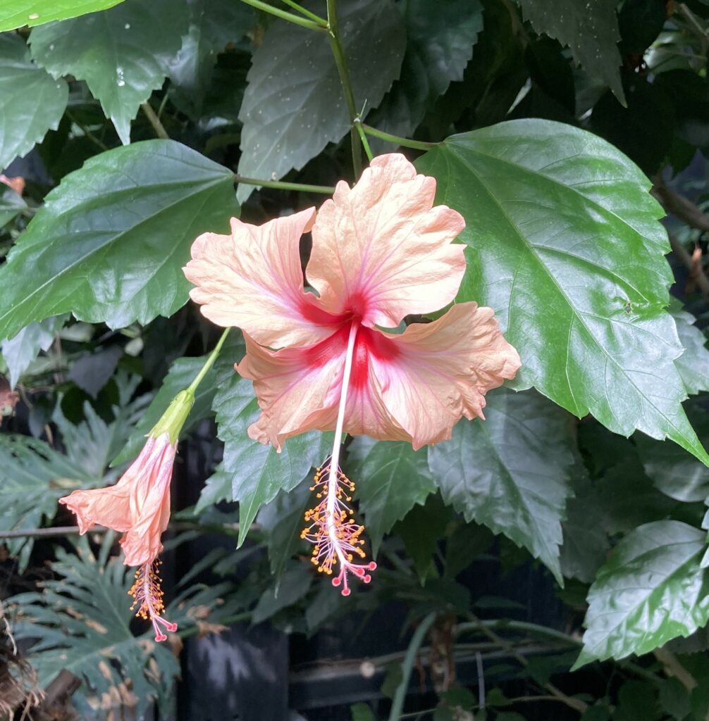 Quand on arrive devant la serre aux papillons. Il y a une sculpture topiaire en forme de papillons. De devant, on pourrait croire qu’il butine les fleurs et à l’arrière, il est décoré avec des plantes grasses (echeveria elegans).